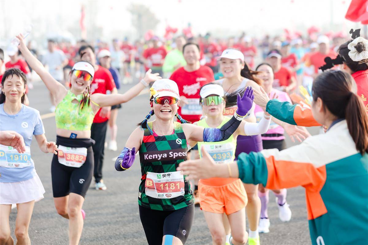 蒙牛2025孝感馬拉松選手沖過(guò)終點(diǎn)線。(孝感馬拉松組委會(huì)供圖)
