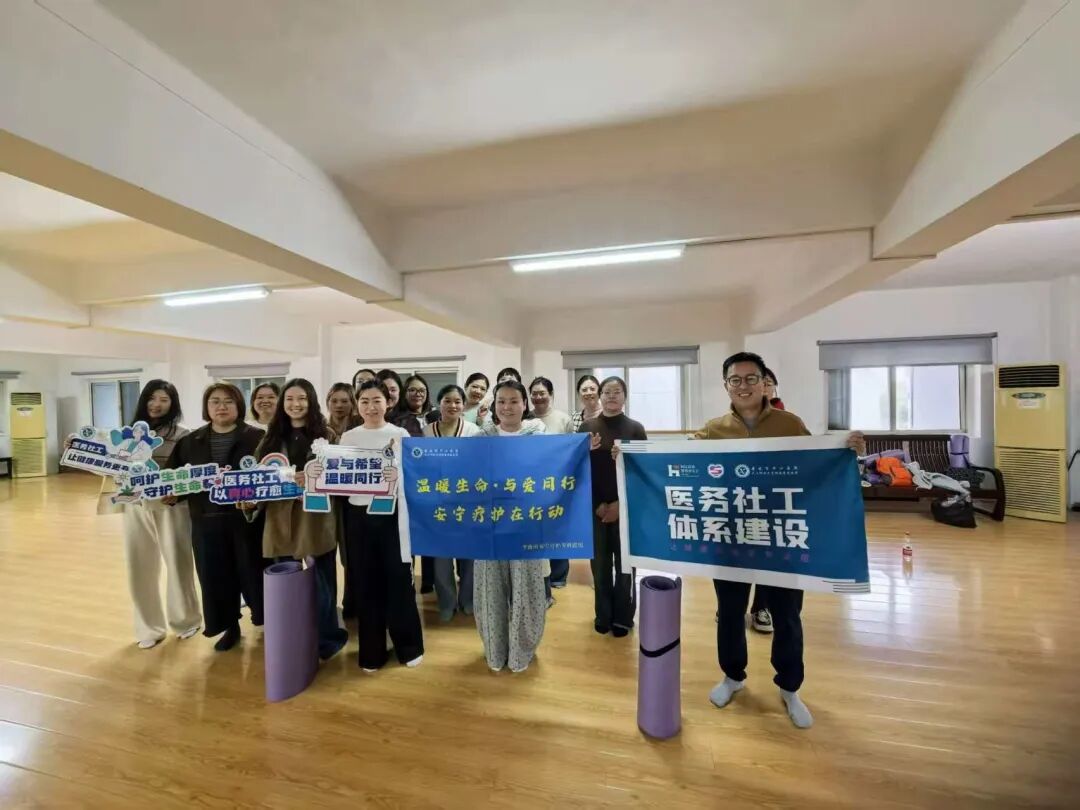 面對生命終末期患者的照護(hù)工作,醫(yī)護(hù)人員長期承受著生理與心理的雙重壓力。為守護(hù)團(tuán)隊(duì)?wèi)?zhàn)斗力,醫(yī)院特別邀請高校體育專業(yè)教師,為近30名一線醫(yī)護(hù)人員量身打造瑜伽減壓活動。在輕柔的音樂中,醫(yī)護(hù)人員通過舒展體式、正念冥想釋放工作壓力,緩解職業(yè)倦怠,實(shí)現(xiàn)身心深度放松。