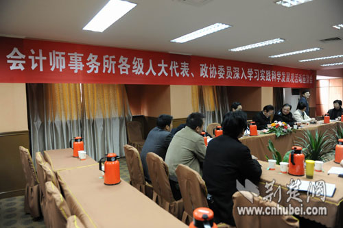 與會代表在會上紛紛發(fā)表了自己的看法和建議。咸寧市咸安區(qū)政協(xié)委員、咸寧市永興會計師事務所總經理張麗平動情的說,自從改制后,老黨員沒有了"娘家",新黨員進步無門,注冊會計師行業(yè)的黨員感覺被組織邊緣化了,深入學習實踐科學發(fā)展觀活動的開展,使黨員們與組織接上了頭,通過學習實踐活動,可以提高隊伍素質,樹立注冊會計師良好形象,有助于注冊會計師行業(yè)形成誠信、公正的社會形象。