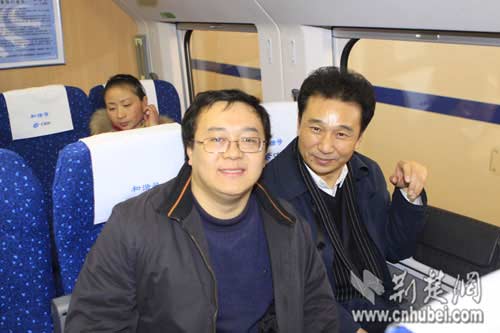 荊楚網(wǎng)消息(記者姚啟慧)26日上午9時(shí),武廣高鐵發(fā)出首趟列車,不少武漢游客專門前來體驗(yàn),在3號(hào)車廂,記者遇到了武漢著名“笑星”田克兢。他坦言,乘高鐵體驗(yàn)既驚又喜,今后要把這次經(jīng)歷融入自己作品中。